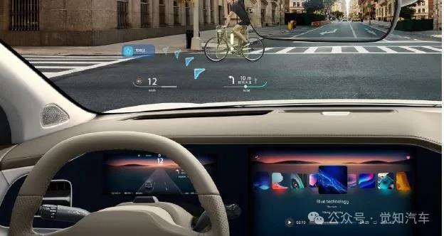 在AR-HUD的實(shí)現(xiàn)過程中,為了將數(shù)字成像與實(shí)景進(jìn)行疊加同時(shí)又不影響駕駛員的視野,因此在成像上要求至少于駕駛員前方7.5m處形成投影虛像。由于此過程中VID(Virtual Image Distance,虛像距離)和FOV(Field of View,視場(chǎng)角)相對(duì)于W-HUD而言都更大,因此AR-HUD所呈現(xiàn)的虛像區(qū)域更廣。據(jù)測(cè)算,此虛擬大屏的尺寸可達(dá)到90英寸以上,在大尺寸虛擬屏的加持之下,其所顯示的內(nèi)容將不再局限于車速、電量等常用信息,同時(shí)由于相關(guān)技術(shù)水平的提升,其所呈之像也更加清晰醒目。