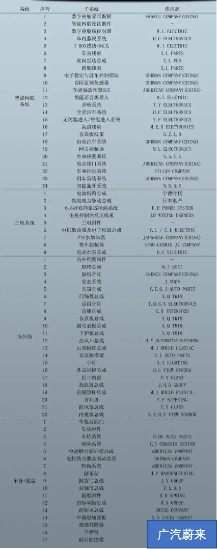 ▲圖1. 廣汽蔚來的BOM表