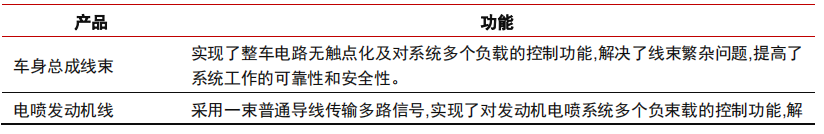 表1:汽車線束主要線束產品及基本功能