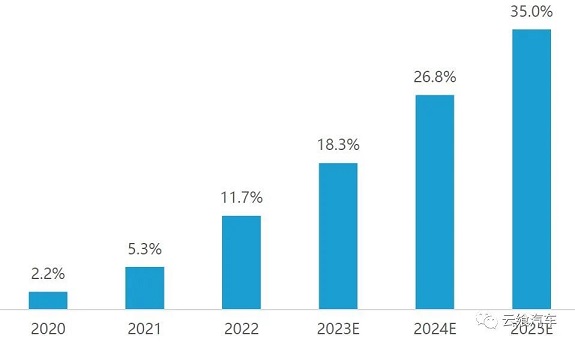 由此可知,在汽車智能化的趨勢之下,智能座艙的相關(guān)功能已經(jīng)逐漸成為了人們購車因素中的重要決定成分。但由于當前汽車市場中對于智能座艙的功能體現(xiàn)并未有具體的標準,也正是因無量化的指標導(dǎo)致了各主機廠在其推出的車型中所搭載的座艙功能種類繁多且水平不一。在這繁且雜的市場環(huán)境中,2022年,我國乘用車智能座艙的市場進一步得到提升其滲透率達到了11.7%,同年,新能源汽車的滲透率為25.6%。