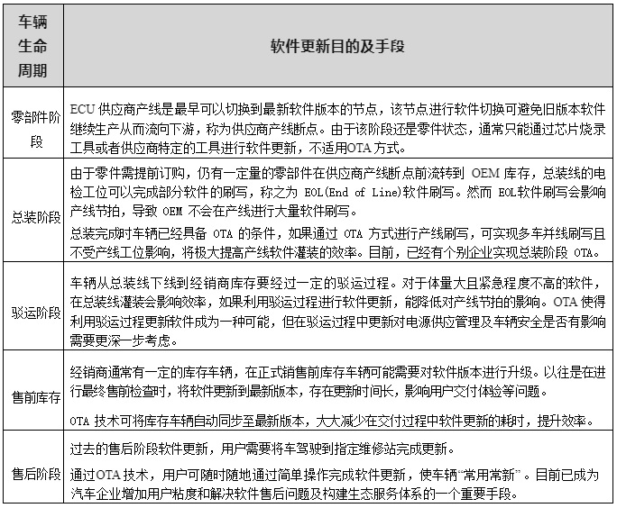 表 2-1 車輛生命周期維度的軟件更新應(yīng)用
