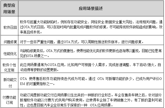 從軟件運(yùn)營管理的維度 OTA 的典型應(yīng)用場景如下表 2-2 所示。