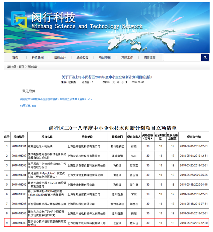 2018年9月6日,我司“基于核心技術(shù)創(chuàng)新的高級輔助駕駛系統(tǒng)”經(jīng)過上海市閔行區(qū)科委專家評審,獲得專家的一致好評,已于9月6日通過項(xiàng)目立項(xiàng),項(xiàng)目立項(xiàng)后將獲得閔行科委資助資金30萬元。