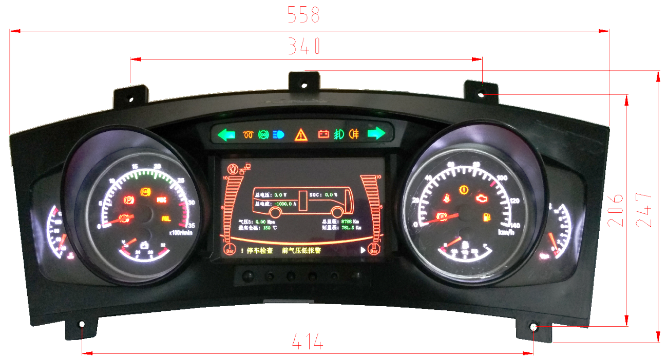 - 6個(gè)步進(jìn)電機(jī)驅(qū)動(dòng)的指針表盤 - 19個(gè)LED符號(hào)片 - 多個(gè)TFT符號(hào)片 - 7寸TFT彩色液晶屏 - 一個(gè)多音頻蜂鳴器 |